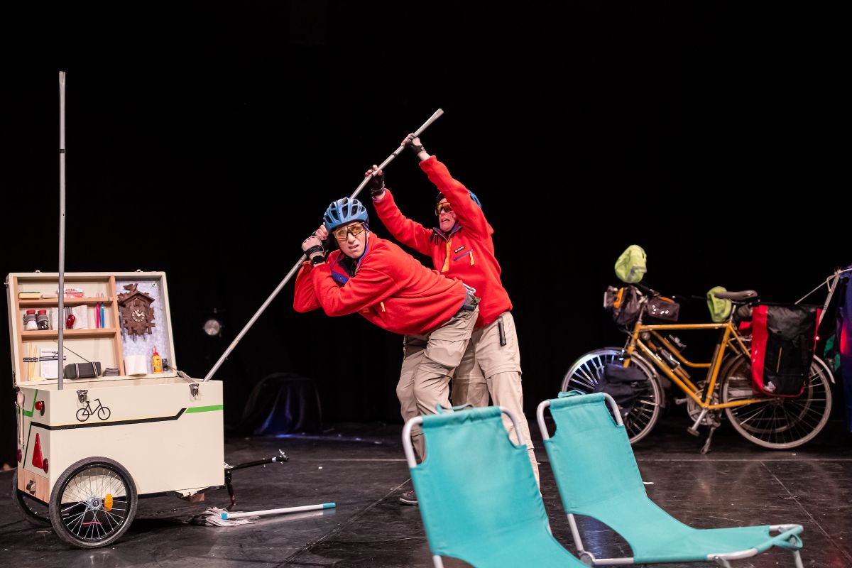Jos en José zijn een grappig duo op de fiets. Alleen vandaag fietsen ze perongeluk het theater binnen. Hier staan ze voor allerlei uitdagingen. Met energierepen en waterflesjes in hun tassen en een hoop gereedschap in hun zakken zijn ze klaar voor de strijd. Maar dit keer wordt het wel een hele gekke bende. Ze hebben je nodig. Help je ze mee?