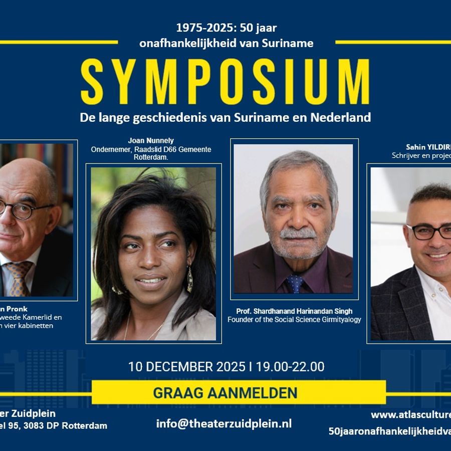 Atlas Cultureel Centrum organiseert samen met Theater Zuidplein, Bibliotheek Rotterdam, Gedeeld Verleden Gezamenlijke Toekomst en Oxford Academy dit bijzondere symposium. Luister, denk en praat mee!