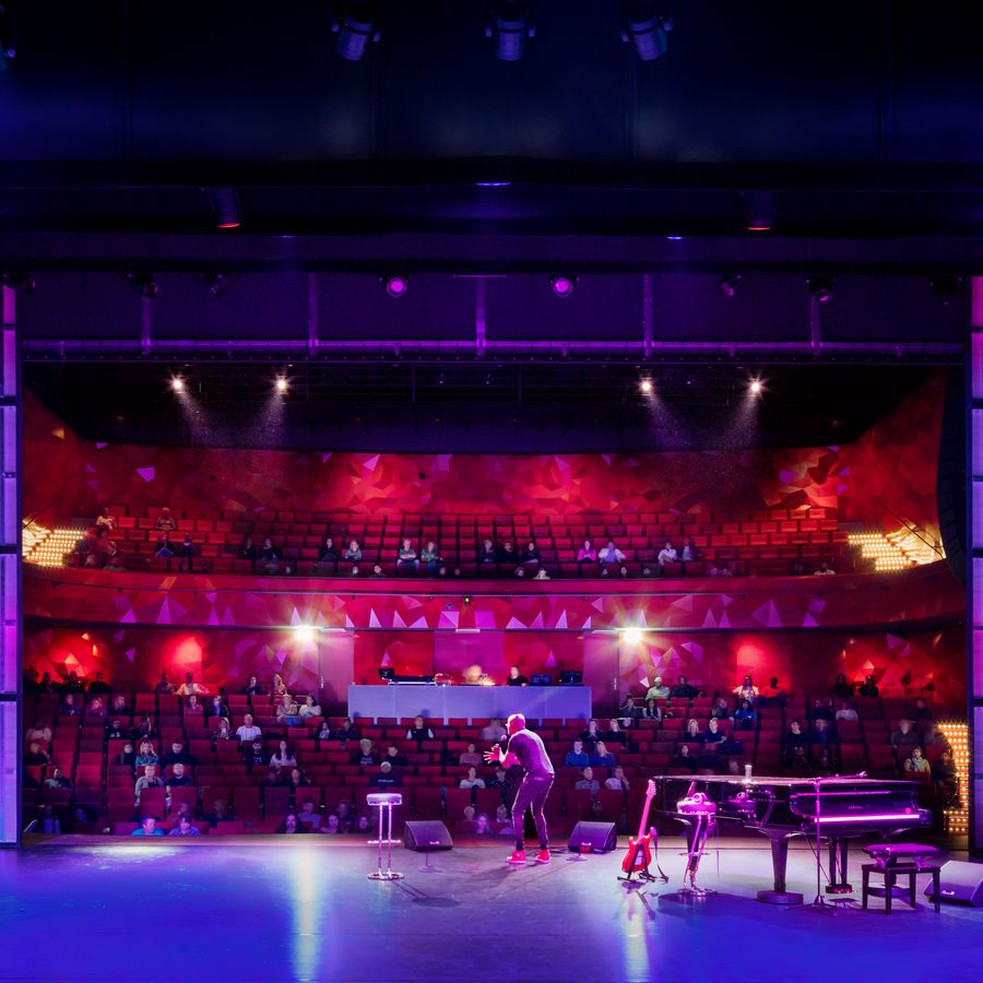 De centrale hal is de meest bruisende plek van het theater.